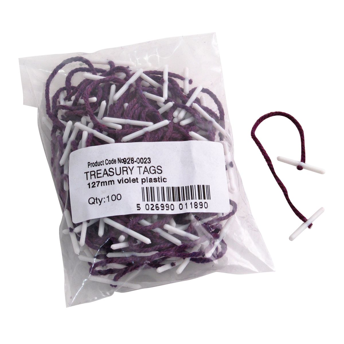 For quick and simple binding of punched documents, these Banner bar tags feature coloured cord with shredder friendly plastic ends to help keep documents secure. Colour coded by size, these violet bar tags are 125mm. This pack contains 100 bar tags.