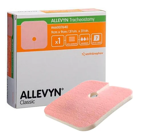 The Allevyn Tracheostomy Non-Adhesive Foam Dressing 9 x 9cm is specially designed to provide gentle and effective wound care around tracheostomy and other neck stoma sites.