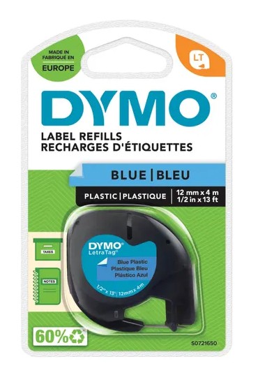 Dymo LetraTag Plastic Tape 12mm x 4m Ultra Blue