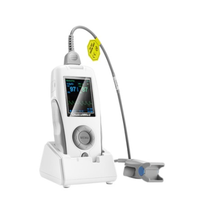 - Audible and visual alarms for low oxygen saturation and abnormal pulse rate.