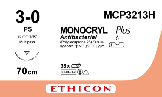 Ethicon Monocryl Plus Undyed Monofilament 3-0, 70cm, MCP3213H