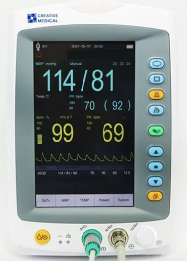 - Parameters: Analogue SpO2, Non-Invasive Blood Pressure (NIBP), Temperature