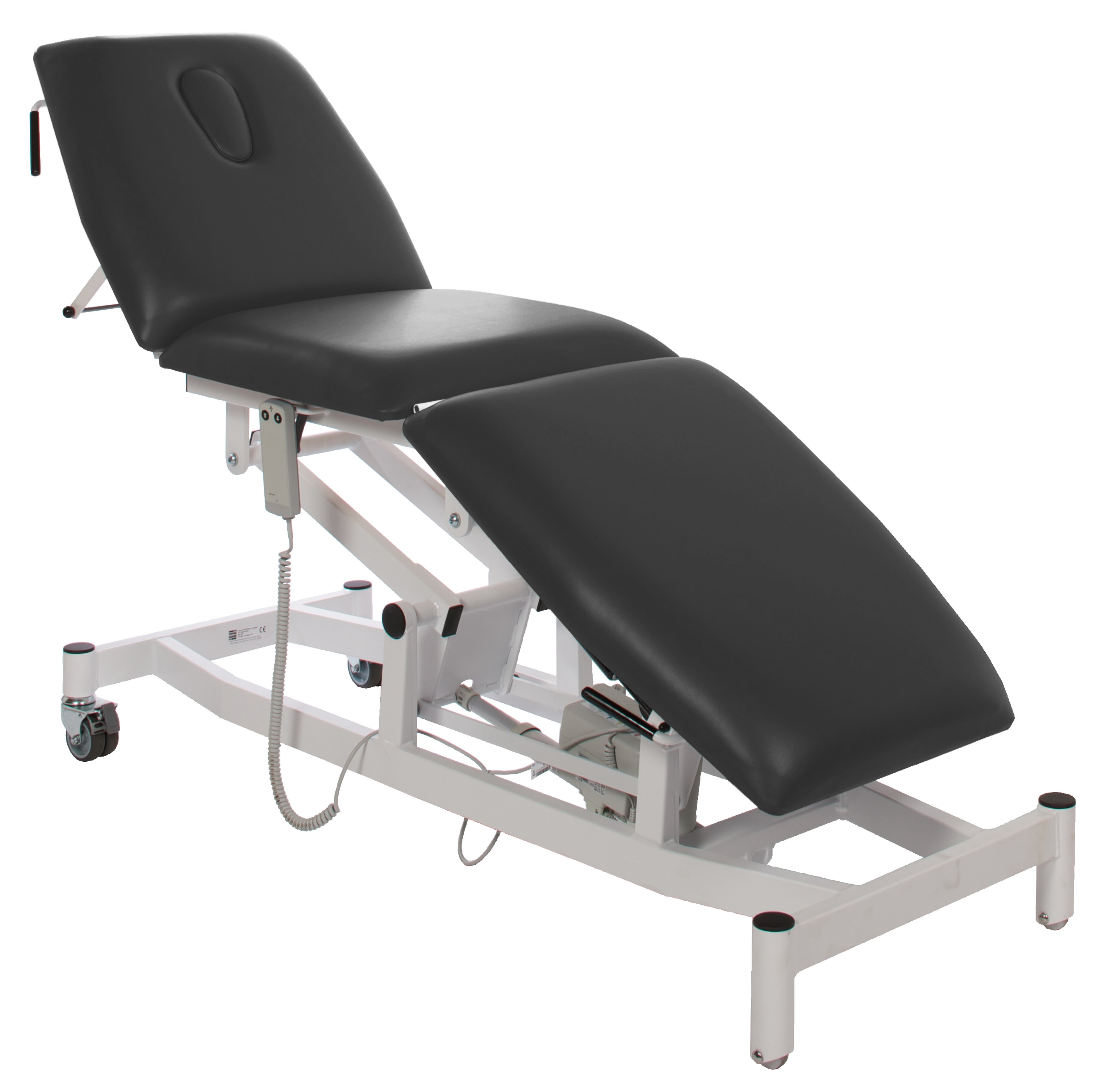 The Doherty 3 section plinth has been developed specifically for the modern GP practice and hospital environment. It uses an electrically operated variable height mechanism controlled via a handset combined with gas assisted backrest and foot sections. A unique self levelling system levels the plinth as it is lowered helping to simplify operation.